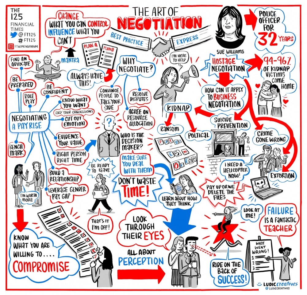 This month, Ludic Creatives arrived with pen in hand to capture in real-time the forum hosted by Former Head of Scotland Yard's Hostage Negotiation Unit, Sue Williams. Sharing best practices around the art of negotiation, the session was designed to transfer the skills used in hostage negotiation situations to the working environment.