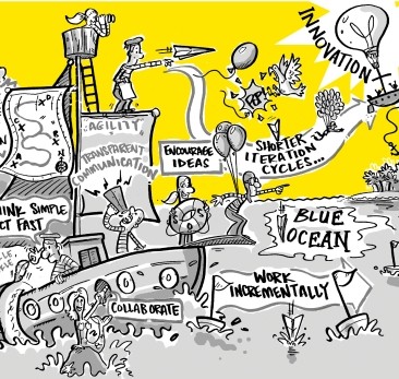 2. Complex ideas are distilled into simple messagesThe superpower of the gag cartoon is the ability to distil elaborate ideas into a light-hearted, clear piece of communication. At Ludic, we have artists who can take a dense strategic transformation journey, waggle their pens and weave a magical "rich picture" out of it. A skilful illustration does not leave an audience scratching their heads as they attempt to grasp a difficult concept – it's all there for instant comprehension.