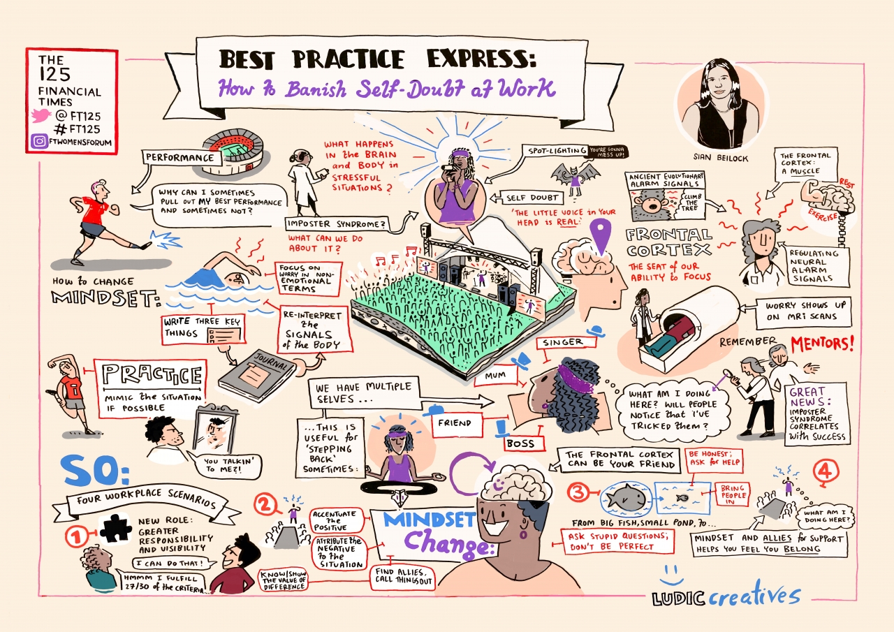 Ludic Creatives live scribed the event capturing Sian's insights in real time to feedback into the room and to share post-event. In this FT125 Forum session, Sian shared psychological tools to manage worry and self-doubt.