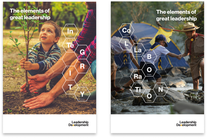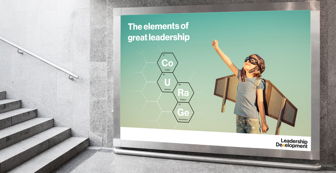 This global pharmaceutical company was looking to recruit more associates into their leadership development programme. We created a subtle logo to work alongside their company mark, and by uniting their values and behaviours with a slogan and set of inspiring images, we created a strong internal identity to bring together the diverse range of offerings that the company provide to train their leaders and create the leaders of the future.
