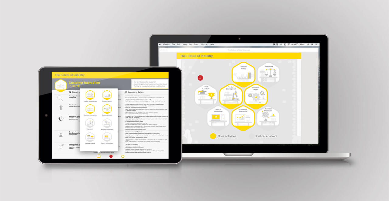 The final result was not only interactive, it was an immersive and engaging experience utilising features such as pop ups, reveals, interactive image sliders and one tap navigation. The iBook was also built around an interactive feedback system where the reader could indicate their progress and priorities, which would then collate and send data to an administrator to feed back.