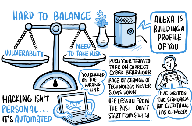 To enable new ideas and conversation around the theme of digital transformation, a scribe captures the discussion on a tablet, sharing their work into the room via a large screen. At the end of the round table discussion, all the images are uploaded to an online gallery and played back to support the final networking session. Next day, the online gallery is posted onto various social media channels in order to share the content with the wider community.